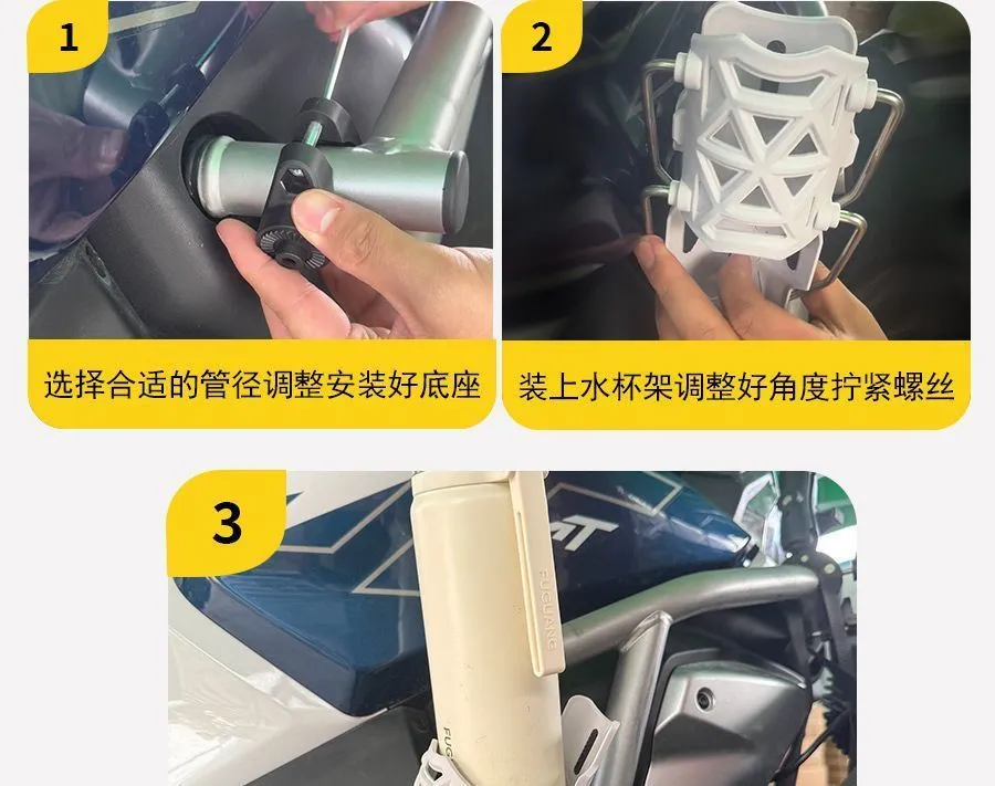 🔥自適應摩託車護槓水杯架電動車踏板車通用水壺支架免打孔旋轉杯架